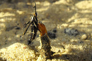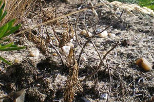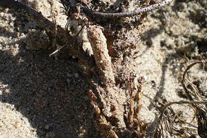 1-4: befallene Pflanzen mit Ausschlupfröhren, Deutschland, Brandenburg, 15 km südwestlich Berlin, 7. August 2008 (Fotos: Frank Rämisch)Forum