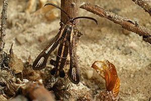 2: ♂, Deutschland, Brandenburg, 15 km südwestlich Berlin, Raupen- und Puppenfund 7. August 2008, e.l. 14. August 2008 (leg., cult., det. & Foto: Frank Rämisch)Forum