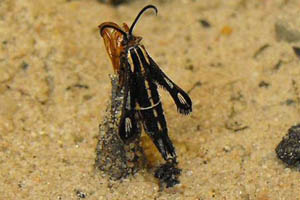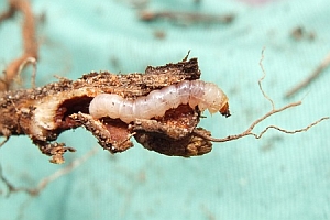 Die Raupe lebt - wie diejenige von Chamaesphecia empiformis - in den Wurzeln.