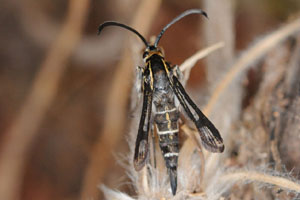 4-5: ♂ an Pheromon “tabaniformis”, Frankreich, Pyreneen, Tarascon-sur-Ariège, 515 m, 11. Juli 2018 (det. & Fotos Ruben Meert)