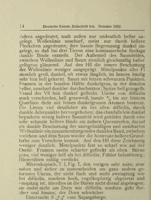 - Erstbeschreibung: Wehrli, E. (1922): Ueber neue schweizerische und zentralasiatische Gnophos-Arten und mikroskopische Bearbeitung einzelner Gruppen der Gattung. — Deutsche Entomologische Zeitschrift Iris 36 (1-2): 1-29, pl. I-II.
