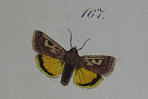 • Erstbeschreibung: Herrich-Schäffer, G. A. W. („1845“) [1843-1855]: Systematische Bearbeitung der Schmetterlinge von Europa, zugleich als Text, Revision und Supplement zu Jakob Hübner's Sammlung europäischer Schmetterlinge. Zweiter Band. Die Schwärmer, Spinner und Eulen: 1-450, Index 1-64, Hepialides pl. 1, Cossides pl. 1-2, Zygaenides pl. 1-16, Sesiides pl. 1-10, Sphingides pl. 1-4, Bombycides pl. 1-32, Noctuides pl. 1-124, Nycteolidae pl. 1. Regensburg.