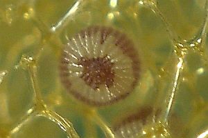 1: Ukraine, Krim, Симферополь, с. Краснолесье, б. Тавельчук, e.o. leg. Oktober 2014 (cult. & fot. am 1. März 2015: Vladimir Savchuk), det. ...