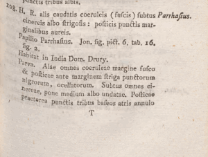 - Neotypus-Festlegung: Nazari, V., Kunte, K. & Z. Bálint (2023): On the identity of Hesperia parrhasius Fabricius, 1793 and its allied species (Lepidoptera: Lycaenidae). — Journal of Asia-Pacific Entomology 26: 1-10.