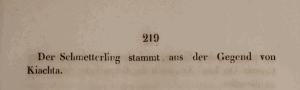 - Erstbeschreibung: Eversmann, E. (1848): Beschreibung einiger neuen Falter Russlands. — Bulletin de la Société impériale des naturalistes de Moscou 21 (3): 205-232. — Digitalisat von Google Books im Viewer der Hathi Trust Digital Library: [217].
