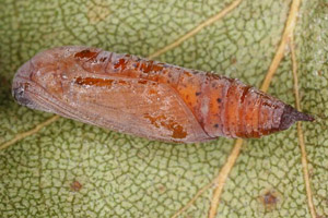 1. Die Hinterflügel sind graubraun bis dunkelbraun und damit dunkler als bei C. miata.