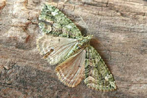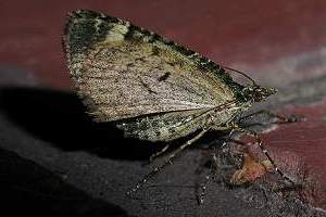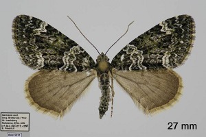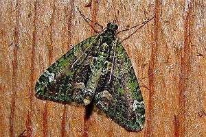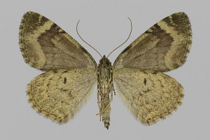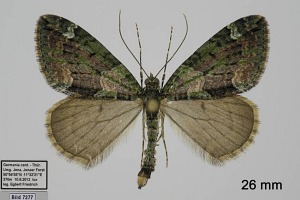 Oben: Chloroclysta siterata, unten Chloroclysta miata. Ein wichtiges Bestimmungsmerkmal ist die Hinterflügelfarbe: Bei Chloroclysta siterata ein mittleres Braun, bei Chloroclysta miata hell gelblichweiß. Beide Belege wurden gemeinsam fotografiert, um eine optimale Vergleichbarkeit der Hinterflügelfarbe zu gewährleisten. Die Größe ist kein brauchbares Unterscheidungsmerkmal. (Text: Peter Buchner)