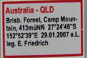 Emmerson & Hoare (2019: 64-65) report on New Zealand: "The only New Zealand specimen of this species, a female, was collected in the m.v. trap on 1 November 2014. The moth was initially identified based on wing pattern and comparison with the original description and available photos of Australian specimens; later the identification was confirmed by a 100% DNA barcode match to ANIC material sequenced for BOLD (D. Li, pers. comm. 10 Nov 2014). The moth was likely a vagrant, as the species has not been seen in New Zealand since. Specimens of this species in ANIC are all from Queensland (Brisbane (the type locality), Burleigh and Bucasia), but it is widespread in Australia according to Herbison-Evans and Crossley (2017). The life history is apparently unknown."