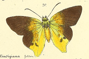 - Erstbeschreibung: Felder & Felder & A. F. Rogenhofer (1864-1867): Reise der österreichischen Fregatte Novara um die Erde in den Jahren 1857, 1858, 1859 unter den Befehlen des Commodore B. von Wüllerstorf-Urbair. Zoologischer Theil. Zweiter Band. Zweite Abtheilung: Lepidoptera. Atlas: 1-10 (Inhalts-Verzeichniss pl. I-LXXIV), 1-10 (Erklärung der Tafeln LXXV-CVII), 1-20 (Inhalts-Verzeichniss Tafeln CVIII-CXL), pl. I-CXL.