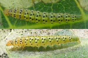 Bulgarien: Vaneva-Gancheva meldet den Erstnachweis für Bulgarien aus der Region Plovdiv, und zwar gleich mit starkem Raupenbesatz: "On 30 September 2016, a damaged fig tree (Ficus carica L.) was noticed in Plovdiv region. The leaves looked skeletonized and whitened even from a distance. On the skeletonized leaves some caterpillars, pupae in white cocoons and many empty pupae in cocoons were remarked."