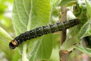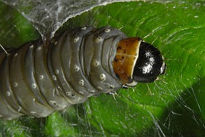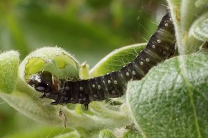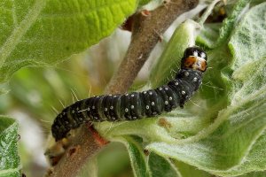J.K. Lindsey zeigt ein Foto einer Raupe an Sambucus nigra [commanster.eu] - von der richtigen Bestimmung der Raupe bin ich nicht restlos überzeugt. Bei meiner Recherche habe ich bisher keine überzeugenden Primärangabe zu Ulmus, Vaccinium, Myrica, weshalb ich hier ein Fragezeichen verwende - was nicht heißt, dass ich diese Pflanzen für grundsätzlich ungeeignet halte. Noch weniger überzeugend sind die mir bisher bekannten Angaben zu Hedera und Sambucus - aber auch diese Pflanzen könnten durchaus genutzt werden. Fest steht, dass C. hebenstreitella keine Rolle als Schädling von Obstbäumen der Familie Rosaceae spielt - die entsprechenden Bäume werden zwar genutzt, aber eben nur gelegentlich. Und fest steht, dass das Nahrungsspektrum der Art noch immer nicht voll verstanden ist - wir wissen nicht einmal, welche denn jetzt die meistgenutzten Nahrungspflanzen dieser Raupe sind.