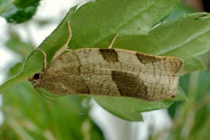 Bei [ukmoths.org.uk] ist ganz ähnlich zu lesen: "The larvae feed on a wide range of deciduous trees and other plants, for example oak (Quercus), birch (Betula) and sallow (Salix), as well as on lower-growing plants including bilberry (Vaccinium) and ivy (Hedera), generally in rolled or spun leaves."