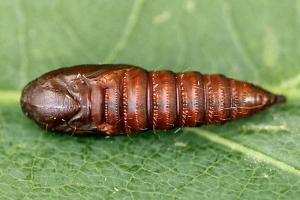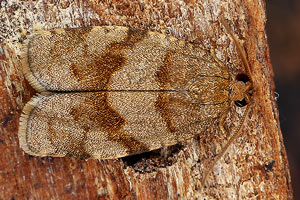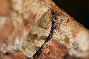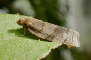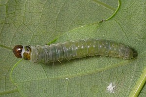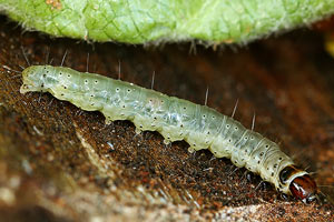Kennel (1910: 193) schrieb dann: "Die Raupe ist grau, hell- oder bräunlichgrün, Kopf braun oder schwarz, Nackenschild grün oder braun, seitlich mit dunkleren Strichen. Sie lebt im Mai und Juni polyphag an Laubholz: Quercus, Pyrus, Prunus domestica, Syringa, Lonicera caprifolium, auch Populus tremula, pyramidalis, Salix aurita, Ulmus, Betula, Alnus, Fagus. Der Falter fliegt Ende Juni und im Juli, stellenweise gemein (z. B. um Obstbäume)."