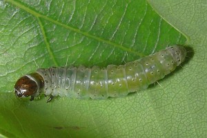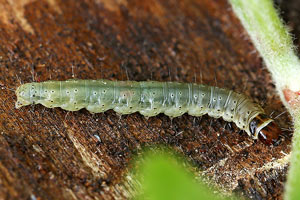 Treitschke (1835: 65) weiß zur variablen Raupe zu berichten: "Herr Moritz fand sie grün, auch graugrün, mit und ohne dunkle Rückenlinie, mit gelben, auch mit schwarzen Wärzchen, mit rothem und mit dunkelbraunem Kopfe und Nackenschilde. Sie lebt im Juny auf Obstbäumen, Geißblatte und spanischem Flieder [...] gewöhnlich einzeln; nur zuweilen, z.B. 1831, um Wien, häufig, und dann in Gärten sogar schädlich."