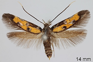 - Chrysoclista bimaculella auct., nec Haworth, 1828 [Fehlbestimmung]