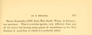 • Original description: Meyrick, E. (1891): Revision of Australian Lepidoptera. IV. — The Proceedings of the Linnean Society of New South Wales. Second series 5 (4): 791-879. Sydney (F. Cunninghame & Co.).