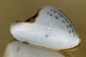 Der dunkle Sattelfleck ist bei C. hispanica auf einen kleinen, deutlichen, runden Fleck reduziert und nie so dominant wie bei C. glaucata. Die Art wirkt viel weißer [Hinweis von Dieter Fritsch im Forum].