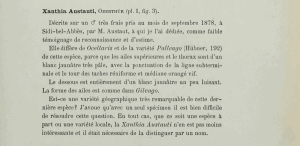 - Xanthia austauti Oberthür, 1881 [Originalkombination und häufig verwendete Kombination, so insbesondere bei Ronkay et al. (2001) und in der [Fauna Europaea (abgefragt 6. September 2019)]