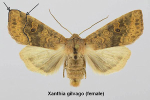 Hinweis: zwei hier bis zum 6. Oktober 2017 eingestellte [Fotos] waren fehlbestimmt und wurden zu Xanthia ocellaris verschoben [Forum].