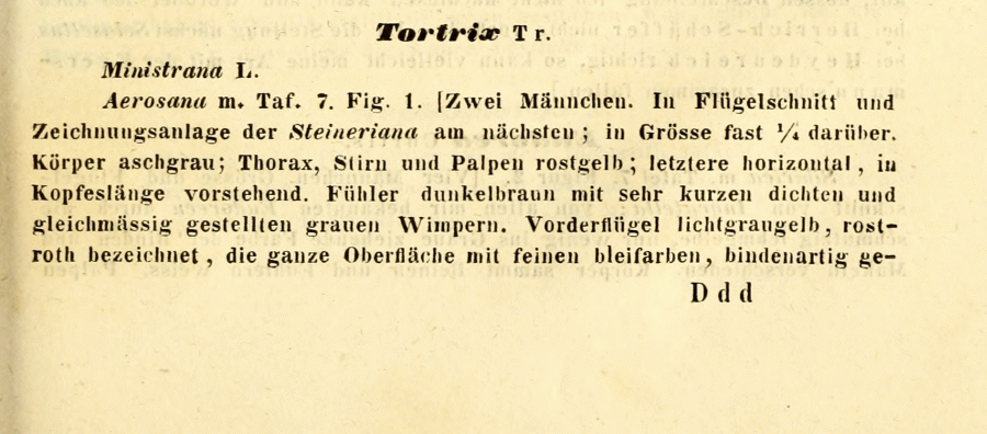 - Tortrix aerosana Lederer, 1853 [Originalkombination]