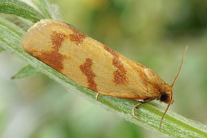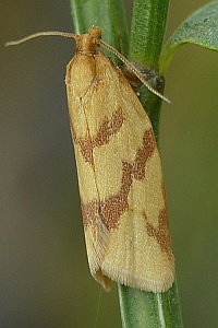 Und Razowski (2001) meldet: "Artemisia campestris, Gnaphalium, Jurinea, Solidago, Aster (Asteraceae), Euphorbia (Euphorbiaceae), Spiraea ulmaria (Rosaceae), Lactuca scariola (Cichoriaceae), Urtica (Urticaceae), Iris (Iridaceae), Sedum (Crassulaceae) und viele andere." Mit "Gnaphalium" war hier sicher Gnaphalium arenarium, also die Sand-Strohblume (Helichrysum arenarium) gemeint.