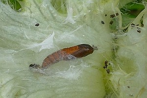 Die oben gezeigten Raupen fraßen an Blättern von Veratrum album bzw. im Blütenstand von Cirsium spinosissimum.