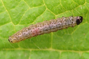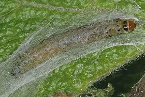 Balmer (1982: 356) stellte zunächst fest: "Auch die in dieser Arbeit zum ersten Mal beschriebene Raupe von C. alticolana hat, soweit sich das heute schon beurteilen lässt, dieselben Ernährungsgewohnheiten wie die übrigen Arten." Balmer (1982: 359-360) berichtete dann sehr detailliert weiter: "Die bisher unbekannte Raupe dieser Art wurde am 24.5.1970 im Zürcher Oberland entdeckt, als im Zusammenhang mit der vorliegenden Untersuchung zum ersten Mal Gebiete um 1000m ü.M. nach Cnephasia-Raupen abgesucht wurden. Der erste Fundort lag auf einer Alpweide zwischen Ferenwaltsberg und «Chli Bäretswil» ZH, auf ca. 920m ü.M., ein zweiter auf der Alp Scheidegg (Gemeinde Fischenthal ZH), auf ca. 1200 m ü.M., ebenfalls auf Weideland. In der Folge konnte die Art an vielen Stellen montaner und alpiner Gebiete der Schweiz, jedoch nie unterhalb ca. 900m ü.M. gefunden werden (vgl. Abb. 1). Der bisher höchstgelegene Fundort, ca. 2000 m ü. M., ist am Tälligrat bei Oberwald im Goms VS; hier wurden am 14.7.1972 mehrere Altraupen (L5) zwischen zusammengesponnenen Blättern an bodennahen Zweigen von Salix reticulata gefunden. In bezug auf die Lebensweise und Entwicklung zeigt alticolana im 1. und 2. Larvenstadium weitgehende Übereinstimmung mit den übrigen untersuchten Cnephasia-Arten. Bei den späteren, nicht mehr minierenden Stadien (L3-L5) sind dagegen einige für alticolana typische Verhaltensweisen zu beobachten. Auffallend ist zunächst, dass die Raupen oder ihre Frassbilder, im Gegensatz zu jenen der übrigen Arten, beim blossen Begehen des Geländes kaum zu entdecken sind. Wie sich herausstellte, lebt C. alticolana fast ausschliesslich in bodennahen Bereichen der Krautschicht. Man findet sie hier hauptsächlich zwischen aufeinanderliegenden oder unter dem Boden direkt aufliegenden Blättern von Rosetten (Plantago, Primula, viele Compositae und Labiatae) oder «eingewickelt» in mehr oder weniger freistehenden, grundständigen Blättern, die oft auch zu Rosetten gehören. Im ersten Fall legen die Raupen zwischen den Blättern (oder zwischen einem Blatt und dem Boden) einen engen, relativ kurzen (15-20 mm), sehr dicht gesponnenen Gespinstgang an, dem entlang sie das Parenchym des unteren und/oder oberen Blattes bis zur aussenliegenden Epidermis verzehren (Fensterfrass). Die in Form und Ausdehnung sehr variablen Frass-Spuren können als bräunliche bis bräunlich-rote, durch Gespinst mehr oder weniger zusammengezogene Flecken auf den Blattflächen erscheinen. Da jedoch ähnliche Gebilde oft auch anderen Ursprungs sind, sind diese Flecken noch kein sicheres Indiz für Frass-Spuren für C. alticolana. Im zweiten Fall verspinnen die Raupen die Ränder eines freistehenden Blattes meistens so miteinander, dass entlang der Mittelrippe (oder einer kräftigen Seitenrippe) ein einseitig offenes Blattröllchen entsteht. Dieses beansprucht bei kleinen Blättern (bis ca. 20 mm Länge) die ganze Spreite, bei grösseren entweder nur die Blattspitze oder - und dies häufiger - nur die Blattbasis. An jungen Blättern von Taraxacum zum Beispiel, an denen die Art häufig zu finden ist, trifft man die Raupen oft im untersten Abschnitt des Blattstiels, dort, wo sich die Spreite zu verbreitern beginnt. In anderen Fällen, etwa bei den grossflächigen Blättern von Rumex, Primula, Plantago und Taraxacum, kommt das Röllchen oft auch am Blattrand zustande, der auf einer Länge von 10-20 mm auf die Spreite umgebogen und mit dieser fest versponnen ist. Die anderen untersuchten Cnephasia-Arten können zwar auf ähnliche Weise Blätter oder Teile davon zusammenrollen, doch hat aufgrund der bisherigen Beobachtungen nur C. alticolana die ausgeprägte Tendenz, dies unabhängig von Grösse und Beschaffenheit des Blattes auf engstem Raum, gewissermassen platzsparend, zu tun. Das für die anderen Arten doch recht charakteristische, knäuelige Verspinnen von Sprossenden konnte bei C. alticolana nur ein einziges Mal, an einem jungen, nur wenige Zentimeter hohen Trieb von Urtica dioecia beobachtet werden. Die Blattröllchen von C. alticolana sind so eng, dass die Raupen sich darin nicht umwenden können, und in der Regel auch nur um wenige Millimeter länger als die Raupe. Auch hier erzeugen die Tiere von innen her Fensterfrass, doch sind die Frass-Spuren eher noch unauffälliger als im zuerst geschilderten Fall. Um die Raupen zu finden, ist es in jedem Fall nötig, die Krautschicht sehr sorgfältig abzusuchen. Ein einziges Mal wurde C. alticolana auch in einer Blüte (Primula elatior) gefunden. Da es sich bei dieser Raupe allerdings um eine späte L5 handelte, die sich tags darauf zur Verpuppung einspann, und die Blüte nur sehr geringe Frass-Spuren aufwies, ist nicht sicher nachgewiesen, dass die Art auch Blüten befällt. Gespinste und Blattröllchen sind in der Regel kotfrei; ähnlich wie die anderen untersuchten Cnephasia-Arten (Ausnahme: C. chrysantheana) schiebt auch C. alticolana von Zeit zu Zeit das Abdomenende zum Abgeben von Kot zur «Behausung» hinaus und schleudert die Exkremente mit Hilfe des Analkamms weg."