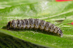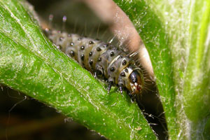 Réal (1954: 59) musste noch schreiben: "Chenille inconnue." Unsere oben gezeigten Raupen von Rudolph Bryner aus der Schweiz und Roland Štefanovič aus der Slowakei wurden in einem Flaumeichenwald an Teucrium scorodonia bzw. an Artemisia vulgaris gefunden. Die Raupennahrungspflanze im Kaiserstuhl wurde leider nicht notiert.