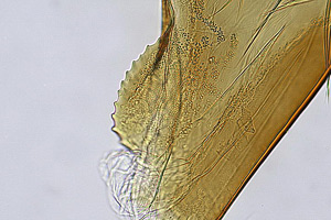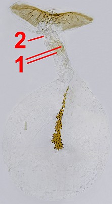 - sklerotisierter Teil des Colliculums setzt nicht unmittelbar am Sterigma an, sondern dazwischen liegt ein verschmälerter, häutiger Bereich (2).