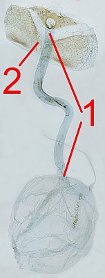 Die ♀ Genitalien unterscheiden sich durch den langen, schmalen Ductus (1), der ohne Übergang in die Bursa übergeht, von allen anderen mitteleuropäischen Cnephasia-Arten. Ob die Form des 7. Sternits (tief V-förmig ausgeschnitten, 2) auch eine Unterscheidungsmöglichkeit bietet, muss derzeit offen bleiben. Jedenfalls ist dieser Ausschnitt bei Betrachtung des Falters von unten auch ohne Präparation deutlich und auffällig.
