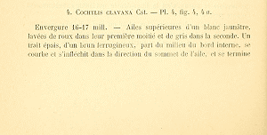 - Beschreibung als Cochylimorpha clavana: Constant, A. (1888): Descriptions de Lépidoptères nouveaux ou peu connus. — Annales de la Société entomologique de France, 6e série 8 (2): 161-172 + pl. 4.