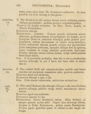 - Erstbeschreibung: Haworth, A. H. (1803-1828): Lepidoptera britannica; sistens digestionem novam insectorum lepidopterorum quæ in Magna Britannia reperiuntur, larvarum pabulo, temporeque pascendi; expansione alarum; mensibusque volandi; synonymis atque locis observationibusque variis: I-XXXVI, 1-609. Londini (R. Taylor). — Digitalisat von Google Books auf www.archive.org: [260].