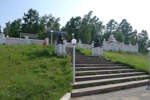 1: Russland, Burjatien, Ostsajan-Gebirge, Tunka-Tal, schamanistisch/buddhistisches Heiligtum in Chal (engl.: Khal; russ.: Хал), 675 m, 14. Juli 2012 (fot.: Hartmuth Strutzberg)Forum