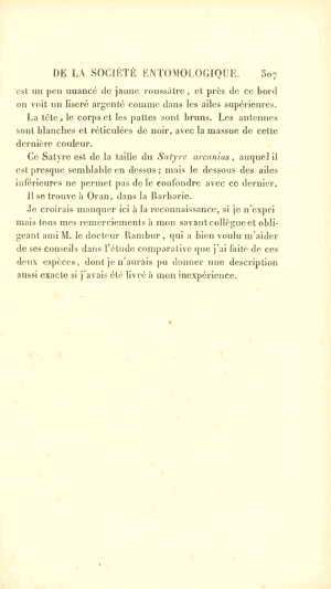 - Erstbeschreibung: Pierret (1837): Description de deux nouvelles espèces du genre Satyre (Latr.). — Annales de la Société entomologique de France 6: 303-307, pl. 12.
