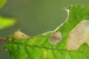 Bestimmt man die Minen bzw. Säcke mit Hering 1957, kommt man auf Coleophora prunifoliae, denn in diesem Werk wird die Existenz der beiden anderen in Frage kommenden Arten (Coleophora spinella und Coleophora coracipennella) schlichtwegs ignoriert. (Text: Peter Buchner)
