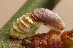 Die Jungraupen überwintern in ihren ca. 2 mm messenden Jugendsäcken, angesponnen in Astgabeln oder Astansätzen.