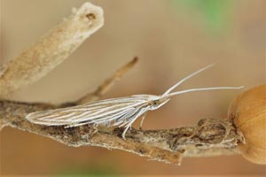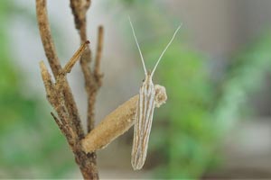 Zur Unterscheidung von Coleophora ciconiella, C. silenella, C. graminicolella und Coleophora nutantella siehe Coleophora silenella