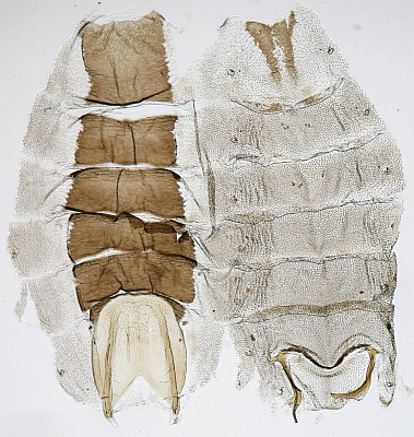 Auch abgeflogene Tiere können meist ohne Vollpräparation sicher erkannt werden: Es fehlen die sonst für die Gattung Coleophora typischen Dornenfelder auf den Tergiten.