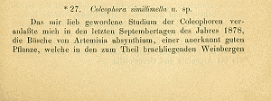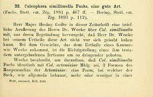 - Coleophora simillimella Fuchs, 1881 [Synonym nach Baldizzone, van der Wolf & Landry (2006: 24)]