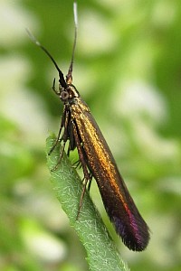 "Da sich C. cuprariella durch einfarbig glänzend braune, bis zu einem Drittel mit violettglänzenden Schuppen stark verdickte Fühler deutlich von C. alcyonipennella unterscheidet, ist die Synonymie mit jener nicht zu halten." (Stübner 2007)