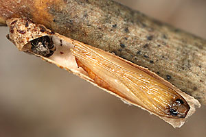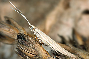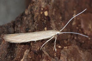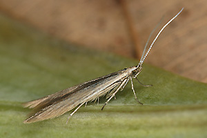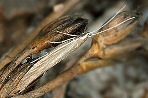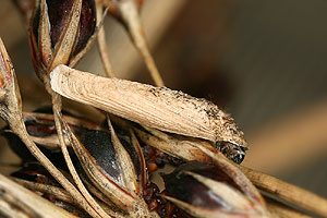 [Bladmineerders.nl] führt noch Juncus conglomeratus an und gibt weiterhin zwei wichtige Hinweise: "The case cannot be distinguished from the one of C. glaucicolella, that has the same biology and hostplants. The differences in the larvae, mentioned by Emmet ao, based on an old paper by Wood are not convincing." und "At high densities sometimes a larva strays towards Luzula campestris."