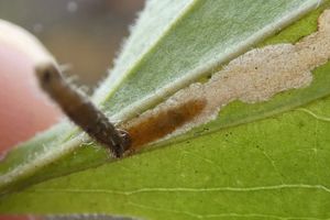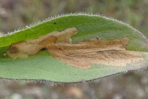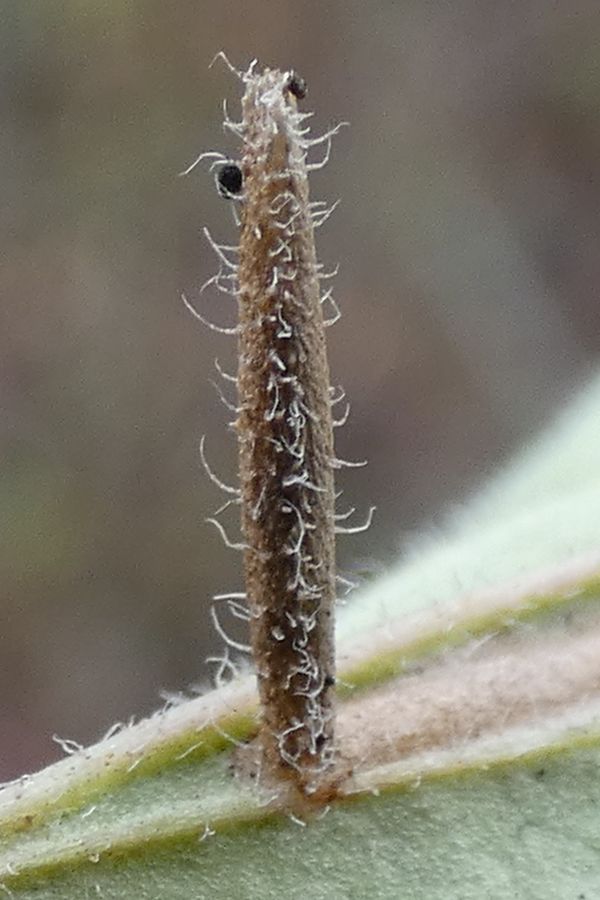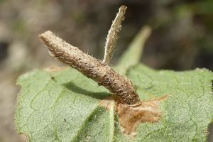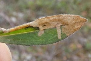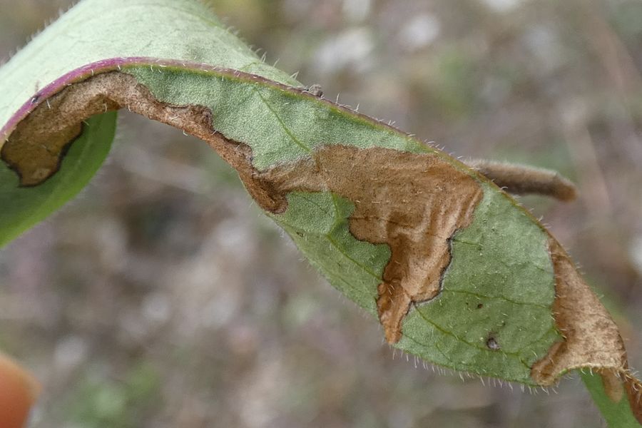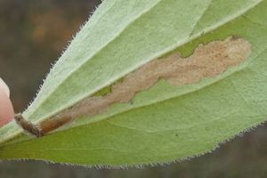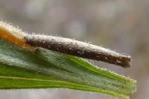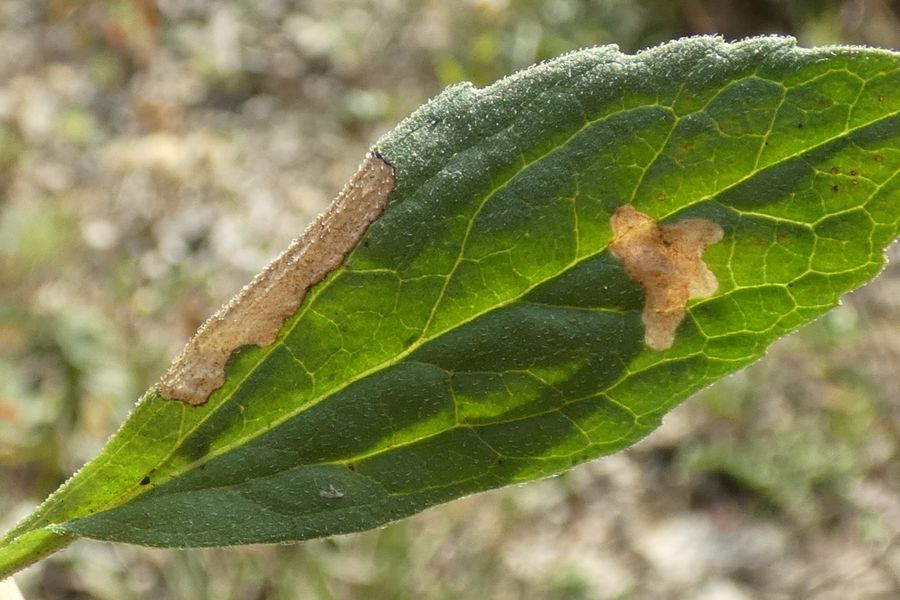 Hierher gehört also z.B. die Angabe von Schütze (1931) zu "Coleophora lineariella": "An den Wurzelblättern von Solidago, Aster amellus und Aster linosyris. Mine lang, geschlängelt, oft weit vom Sacke entfernt, der in der Nähe des Blattstiels angesponnen ist. Röhrensack zylindrisch, braungrau. Raupe überwintert erwachsen (Sorhagen)."