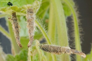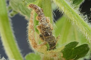 3-4: zwei Raupen mit Sack, Deutschland, Sachsen, Doberschütz, neben einem Feldweg, an Schwarznessel (Ballota nigra), 17. Mai 2011 (leg., cult., det. & Freilandfotos: Heidrun Melzer)