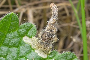 1-4: Die Schwarznessel (Ballota nigra) ist stickstoffliebend und wächst somit vorzugsweise an Ruderalstellen, also eher unattraktiven Plätzen. Im Mai sind an den Blättern die Minen als braune Flecken leicht zu finden. Die Säcke befinden sich an der Blattunterseite