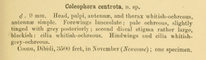 Taxonomischer Status unklar, vielleicht identisch mit Coleophora brysostola