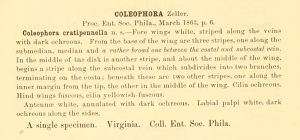 - Erstbeschreibung: Clemens, B. (1864): North American Micro-Lepidoptera. — Proceedings of the Entomological Society of Philadelphia 3: 505-520.