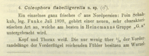 • Erstbeschreibung: Rebel, H. (1919): Beitrag zur Kenntnis paläarktischer Mikrolepidopteren. — Verhandlungen der zoologisch-botanischen Gesellschaft in Wien 69 (3/5): (126)-(135).