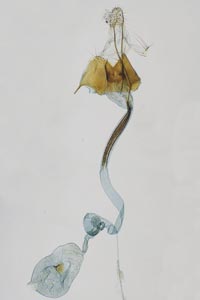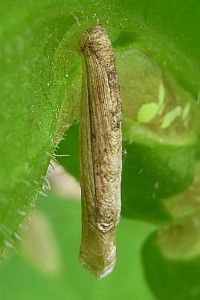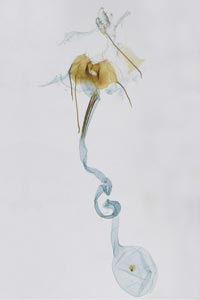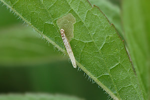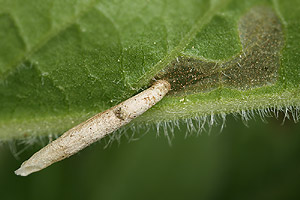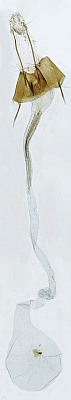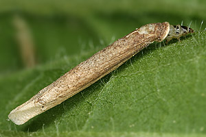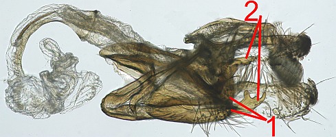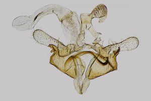 Genitalabbildungen z.B. Nel, J. (2001): Atlas des genitalia ♂ et ♀ des Lépidoptères Coleophoridae de France, p. 60 (♂), p.151 (♀). Die Valven sind dort aufgeklappt, aber mit abgerundetem Außenrand gezeichnet (unvollständige Aufklappung? Individuelle Form?)