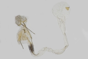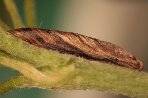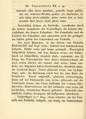 "Derzeit wird das Taxon Coleophora fuscociliella Zeller, 1849 als Synonym zu Coleophora medicaginis Herrich-Schäffer, 1861 betrachtet. Die beiden genannten Taxa sind aber im Genital deutlich verschieden und stellen sicher zwei verschiedene Arten dar. Um festzulegen, welcher der beiden Namen der für das oben gezeigte Tier gültige ist, muss erst das Typenmaterial verglichen werden." (Telefonische Auskunft von Andreas Stübner an Jürgen Rodeland) Andreas "Karl" Stübner starb am 7.3.2018 viel zu jung und konnte so nichts mehr zur Klärung dieses Artenpaars beitragen. Damit gilt auch die Synonymie noch immer, auch wenn jetzt schon lange bekannt ist, dass sich aktuell 2 Arten unter dem Namen "Coleophora fuscociliella" verbergen. Doch die Klärung, wie sich die beiden Taxa morphologisch (und biologisch?) unterscheiden und wie sie jeweils verbreitet sind, steht noch immer aus. Denn dazu ist erst einmal zu klären, was "Coleophora fuscociliella" überhaupt ist; Zeller (1849: 251) hatte zum Vorkommen seiner neuen Art geschrieben: "Diese Art fliegt bei Frankfurt a.M., um Wien bei Tivoli, Mauer, Baden im Juni und Juli einzeln auf trocknen Grasplätzen und in jungem Gebüsch. Mann fing zwei Exemplare zu Ende Mai bei Montenero in Toskana." Gut möglich, dass im Typenmaterial bereits 2 verschiedene Arten stecken. Vermutlich muss nach Sichtung des Typenmaterials von Zeller erst einmal ein Lectotypus festgelegt werden. Sollten die Syntypen aus Deutschland und Österreich zur gleichen Art gehören, hätte es keine Konsequenzen, ob ein Lectotypus aus Deutschland oder einer aus Österreich ausgewählt wird (oder schon wurde (?)). Coleophora medicaginis könnte sich dann als Synonym zu dieser Art herausstellen - oder eben als bona species. Sollten in Zellers Typenmaterial hingegen beide Arten versteckt sein, würde es Sinn machen, schon vor der Lectotypenfestlegung zu prüfen, wohin denn das Weibchen von Mainz gehört, das Schmid als Raupensack (wohl an Medicago) gesammelt hatte, und das Herrich-Schäffer (1861: 142) dann - dem Vorschlag von Schmid folgend - als "Coleophora medicaginis" beschrieb. Falls bei Zeller 2 Arten in der Syntypen-Serie stecken und die einer Art davon zu Herrich-Schäffers Tier aus Mainz passt, sollte am besten die andere Art als Lectotypus von C. fuscociliella festgelegt werden, da so beide alten Namen erhalten werden könnten. Sollten Zellers Tiere zu einer Art gehören und Herrich-Schäffers Tier zu einer anderen, wäre die Namensvergabe auch geklärt. Sollten aber alle Exemplare die gleiche Art betreffen, müsste weiter nach einem Namen für die zweite "Stübner-Art" in diesem Komplex gesucht werden. Ich jedenfalls kann verstehen, dass sich hier noch niemand an die Arbeit gemacht hat.