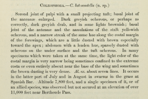 - Erstbeschreibung: Chambers, V. T. (1875): Teneina [sic] of Colorado. — The Cincinnati Quarterly Journal of Science 2 (4): 289-305.